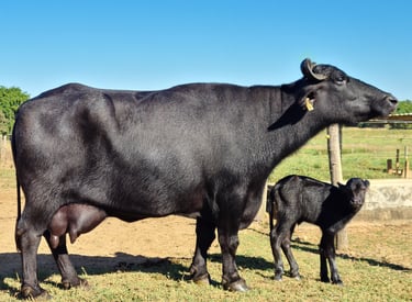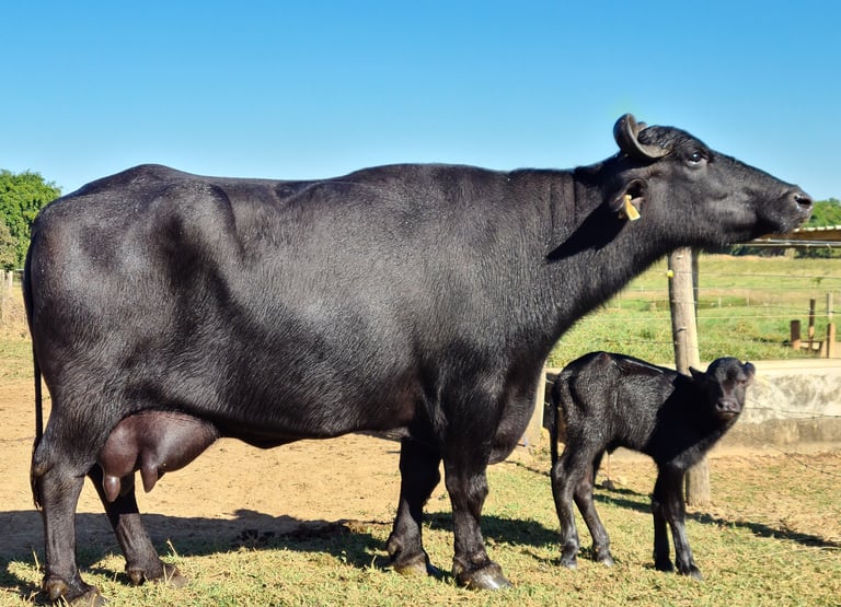 A Búfala Glamurosa, com seu porte majestoso e presença cativante, é a verdadeira diva da Fazenda Cantão. Proveniente de uma linhagem premiada, ela não apenas encanta pela beleza, mas também se destaca por sua alta fertilidade e extraordinária capacidade produtiva. Seu charme e qualidade genética fazem dela uma referência no melhoramento dos rebanhos, atraindo a atenção de pecuaristas em busca de excelência.