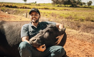 Filipe Rezende, bubalinocultor, viralizou nas redes conversando com seus búfalos.